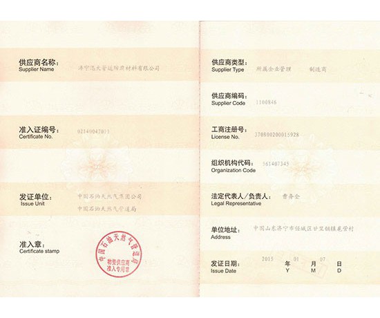 中石油一級(jí)供應(yīng)網(wǎng)絡(luò)證書(shū)